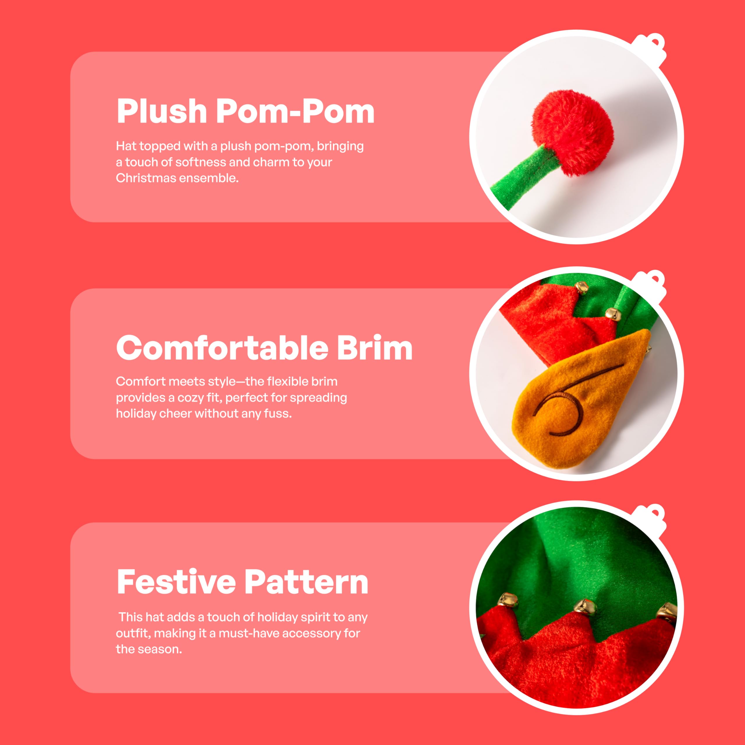 • HIGH-QUALITY MATERIAL: Made from 100% polyester, our elf hats are crafted for comfort and durability. The cute elf santa hats offer a cozy feel and effective warmth, perfect for sharing the warmth and joy of the season with family and friends.